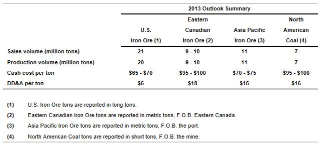 “Rio Tinto’s Pilbara iron ore President Greg Lilleyman anticipates prices to fall in the back half of 2013, saying: