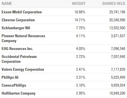 Image: Top holdings of the Energy Select Sector SPDR; source: State Street.