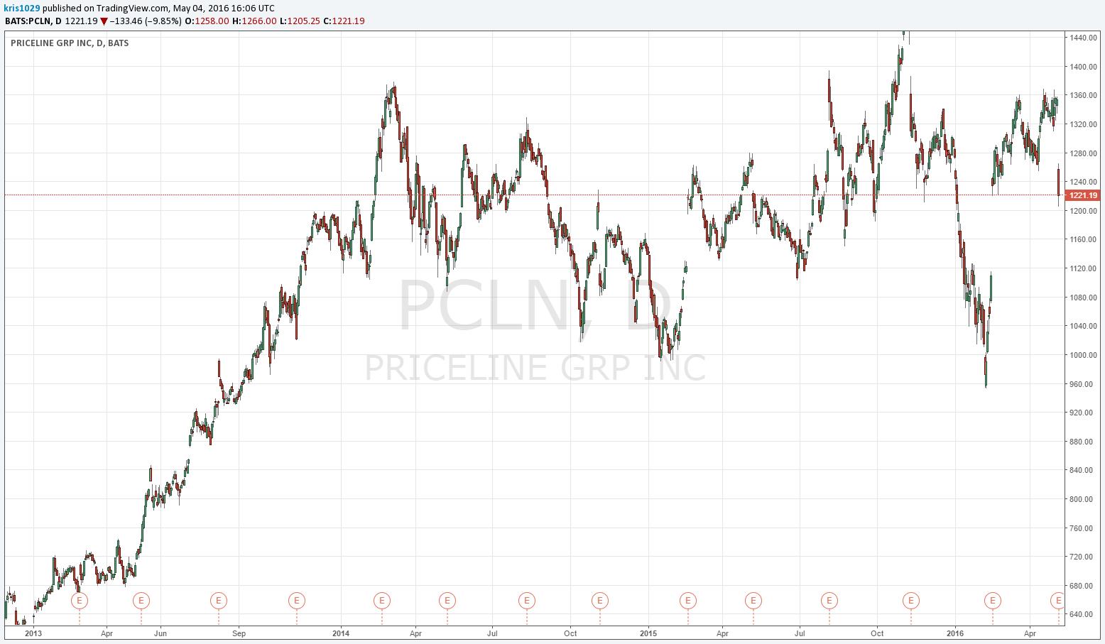 Priceline’s peer Expedia (EXPE) saw itself catching a nice updraft after its first quarter report April 29, despite the fact that it noted coming headwinds in its second quarter of 2016 as well. The firm reported a solid beat in the first quarter, but pointed to headwinds such as the shift of Easter to the first quarter as a reason to reiterate full-year guidance instead of raising it. Expedia did not issue specific guidance for the second quarter of the year as it reiterated its 2016 outlook, likely a contributing factor to the huge difference in reactions to the two firms’ quarterly reports. Perhaps Priceline should adopt a similar policy of only issuing annual guidance?