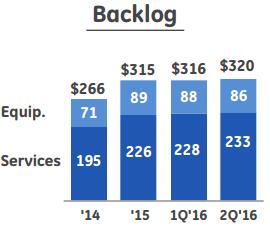Nevertheless, it appears forward looking assumptions surrounding GE’s industrial-focused operations have been the source of investor concern. Though its backlog continues to climb, total orders fell 2% (partially buoyed by recently-acquired Alstom orders, services orders, and the growing GE Digital segment) in the second quarter from the year-ago period. Organic orders fell 16% in the quarter, as equipment orders were materially pressured by market weakness in its ‘Oil & Gas’ and ‘Transportation’ segments and its ‘Power’ and ‘Aviation’ segments’ reported order growth suffered from strong performance in the comparable period in 2015. Despite the weakness in its equipment orders, we love what we’ve seen from services orders at GE (up 9% in the quarter), which are the basis of its massive backlog and consist of attractive long-term contracts.