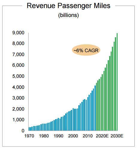 There are few industries with greater visibility than the commercial aerospace business, and the recovery from terrorist activity from 9/11 to more recent events speaks to sustainability. Cancellations and deferrals were relatively minor as a result of passenger-demand shocks as travel for business and leisure are a core part of the world’s everyday life. Passenger demand is expected to ramp at a 6% compound annual growth rate for many years to come, according to United Technologies, and while other industry participants such as Boeing forecast passenger traffic growth at ~4.8% per year over the next two decades, the consensus is still an above-inflation pace of expansion. Boeing will tell you that commercial aerospace is a growth industry. We expect such robust demand to continue to fuel Best Ideas Newsletter holding Priceline’s (PCLN) growth. Expedia (EXPE), Travelzoo (TZOO) and TripAdvisor (TRIP) are also key beneficiaries.
