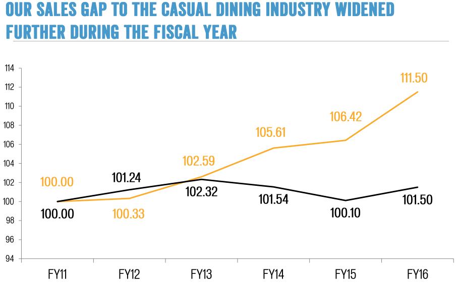 For example, the company’s operating margin expanded to 9.6% in fiscal 2016 from 6.9% in fiscal 2011, while sales growth at Cracker Barrel has expanded at a rate much faster than the broader casual dining industry, with significant outperformance originating in its fiscal 2013 and continuing through the present day. The first quarter of fiscal 2017, results released November 22, marked the company’s 10th consecutive quarter of positive comparable store restaurant sales and its 20th consecutive quarter of outperforming the casual dining industry. We continue to believe Cracker Barrel is a long-term winner as restaurant performance remains stellar, despite weakness in its retail store. We love the dual nature of its business model in this regard.