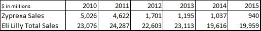 The loss is even more disappointing as Lilly faces near-term patent challenges of its treatment for erectile dysfunction Cialis and Strattera. The loss of Cialis will have the largest impact with sales of the drug totaling $2.3 billion in 2015. As the generic industry aggressively looks to produce its own version of the product, we expect sales dynamics to mirror the losses seen in Zyprexa.