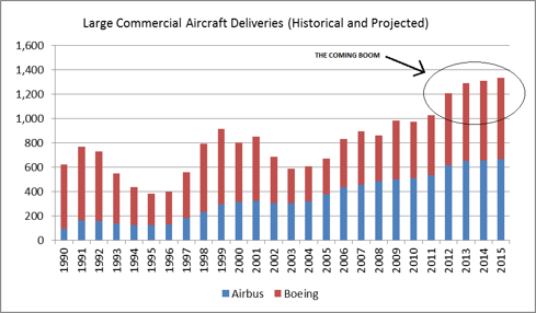 As outlined in the previous two editions, The Future of the Narrowbody Market and How to Play the Upswing in Commercial Aerospace, expected deliveries of commercial planes are set to advance considerably in coming years. In this third edition, let’s dig into the valuation and potential upside of Precision Castparts (PCP), one of the best long-term plays on commercial aerospace demand. We’ll also dive into an interesting small-cap play and a compelling micro-cap opportunity in the aerospace supply chain.
