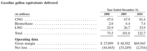 But this huge barrier to Clean Energy’s success – the fact that it by itself must throw a huge amount of capital at the development of this industry (and natural gas facilities) – seems to now be off the table. With the implicit backing of the second-largest producer of natural gas in the U.S., Chesapeake Energy, it’s obvious to us that Clean Energy is now at the forefront of an industry that will actually proliferate on a large scale in the future. We previously had doubts that Clean Energy would be able to fund the industry’s development largely by itself. But now, Chesapeake’s $150 million investment in Clean Energy alone will spur the development of 150 natural gas filling stations – that’s almost double the current 224 stations that Clean Energy operated at the end of 2010. Chesapeake, to some extent, is laying the groundwork for Clean Energy’s future success.