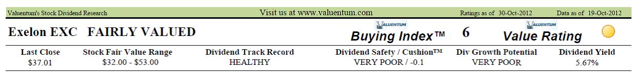 In the aftermath of the announcement, both Jefferies and Argus cut the ratings on the stock, but we think both firms were a bit late to the party. Inside our Valuentum Dividend Report for Exelon, we can see what we thought about Exelon on October 30. The fact that Exelon’s dividend was risky was not surprising to Valuentum members. The headline of our dividend report on Exelon is shown below:
