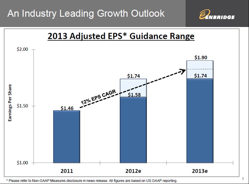 On top of a strong dividend increase, Enbridge guided to 12% earnings growth in 2013 (based on current projections).