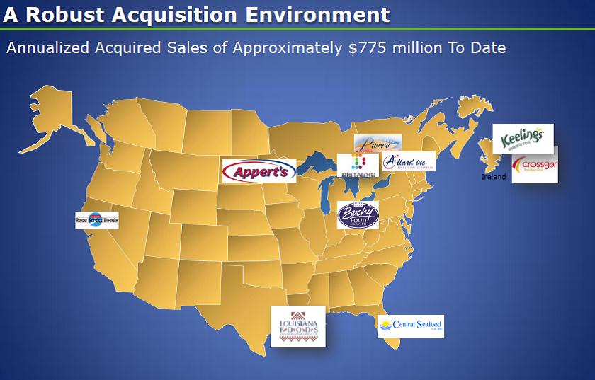 Food distributor Sysco (click ticker for report: ) reported lackluster second quarter results Monday morning. Revenue grew 5% year-over-year to $10.8 billion, a touch better than consensus forecasts. Earnings, although in line with consensus estimates, were down 7% year-over-year to an adjusted $0.40 per share (Image Source: SYY 2Q Earnings Presentation).