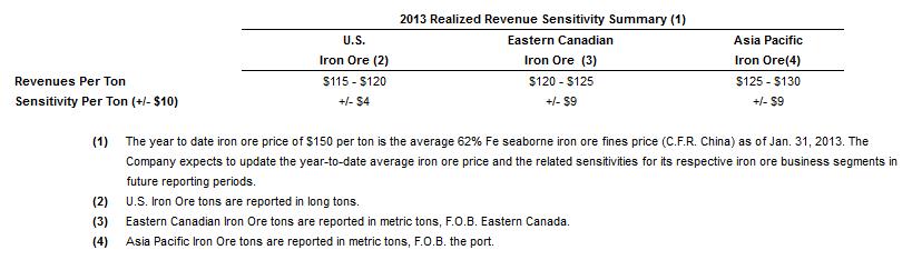 Capital management at the firm seems relatively weak, as the company had to write down $1 billion related to its acquisition of Thompson Iron Mines in 2011. The company also had to raise capital by selling 9 million shares of common stock and 20 million shares of preferred stock. With the firm giving relatively positive guidance (shown below) for 2013, we’re a bit shocked by this move since it has upset existing shareholders (Sources of Images: CLF).