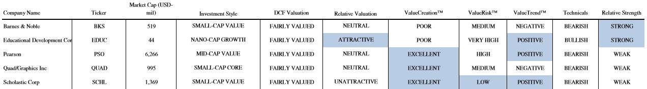Firms in the book publishing industry compete primarily on the basis of quality and price. Rivals include numerous book, ebook, textbook, library, reference material, and Internet resellers. Industry constituents can carve out advantages by offering a comprehensive offering, as in the case of Scholastic’s suite of reading intervention products and services. Still, firms are subject to rapid changes in consumer preferences, especially within the ebook market, which is just beginning to take shape. We’re neutral on the group’s structure.