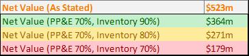 We note, however, its net (book) value remains above the current share price, even when we take a large haircut to the value of its net plant, property, and equipment (net PP&E) and inventory balances. Though we think PP&E is likely worth less than its value on the balance sheet given the relative unattractiveness of much of the firm’s store footprint, the firm’s net asset value is still positive at this time.