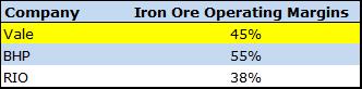 The fundamental reasoning behind Vale’s decision is sound, as we believe there is no reason to invest in poor assets just for the sake of diversity. This is particularly true given Vale’s robust iron ore operating margins (shown below).