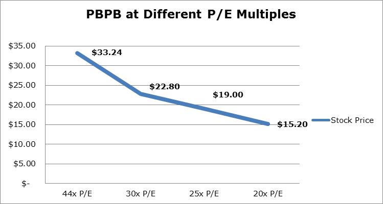 Ultimately, we believe Potbelly conservatively presents downside more than of 30% based on a 30 times forward P/E multiple valuation, with as much downside as 50%+ if the market were to ascribe it a PEG ratio in-line with that of Panera. Not often do we find companies with relatively weak EBITDA margins, weak same-store sales growth, and a slow growth track record trade at such a hefty premium to its peers.