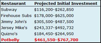 Creating a robust franchisee system seems like a great option. The only problem is that Potbelly requires significantly higher capital costs than its peers.