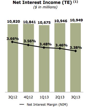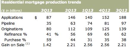 With interest rates moving higher through much of the third quarter, mortgage demand fell off a cliff. Noninterest mortgage income declined 65% year-over-year to $877 million driven by an 80% year-over-year decline in production revenue. We suspect much of this decline was driven by lower refinancing activity, so we do not believe investors should extrapolate this news to mean that the housing market recovery is over. Still, total origination volume declined 14% year-over-year on 45% lower mortgage applications. We believe rising rates have at least modestly impacted the housing market.