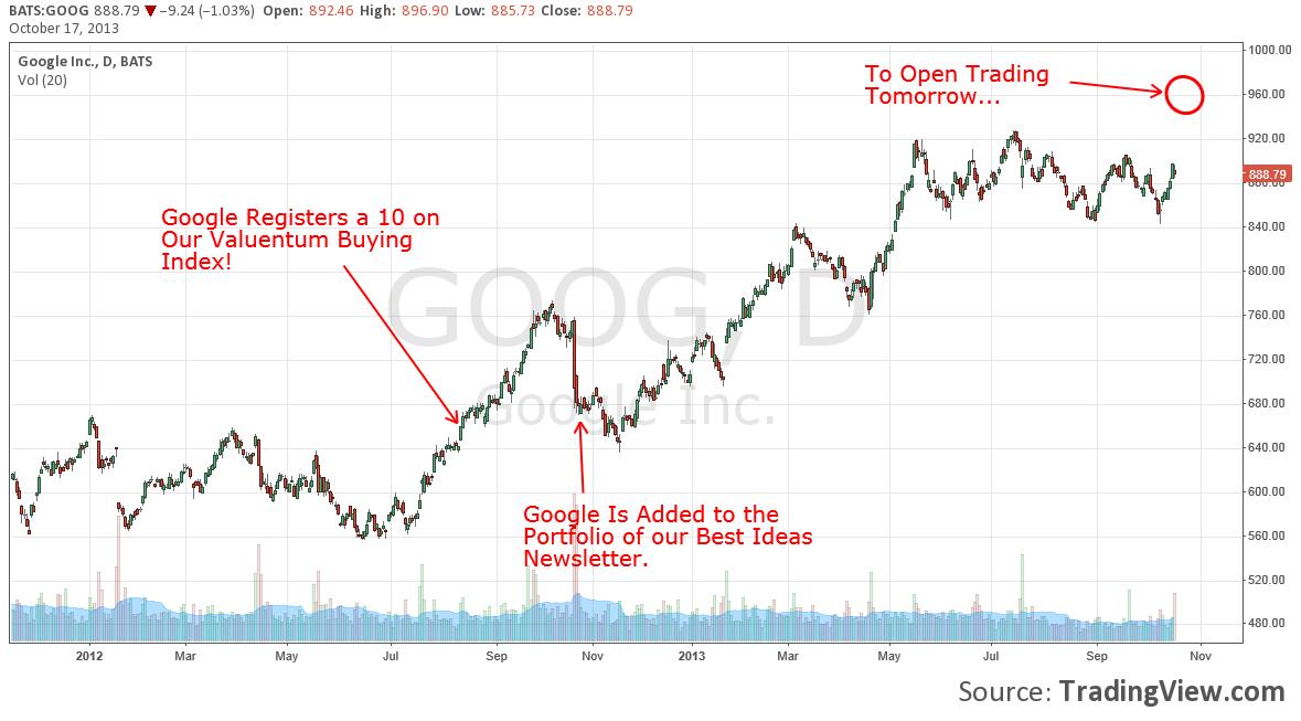 Second, you’ll notice that we didn’t immediately add Google to the portfolio of our Best Ideas Newsletter when it registered a 10. Just like a value manager doesn’t own every stock that is undervalued in the market in his or her portfolio, we don’t own in our actively-managed portfolios every stock that scores a high rating on the Valuentum Buying Index. Our Best Ideas portfolio and Dividend Growth portfolio have a portfolio management overlay that serves as a filter to allow only the best-of-the-best ideas to become holdings. Google scored a 10 on the Valuentum Buying Index in August 2012, but we didn’t add it to our Best Ideas portfolio until November of that year.
