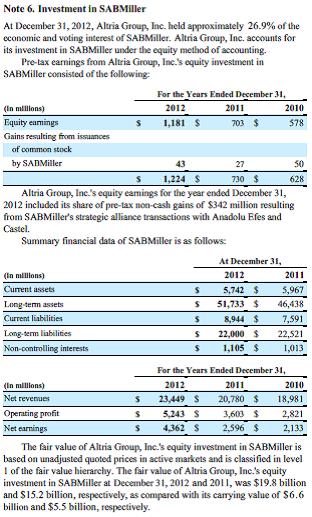 (*) Altria’s Investment in SABMiller, excerpt from page 53 of annual report.