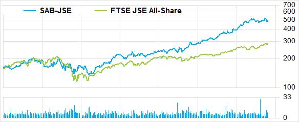 SABMiller Recent Equity Performance (SAB-JSE) – in South African Rand