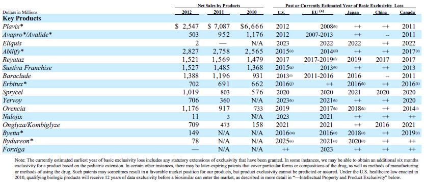 The following represents Eli Lilly’s patent expiration profile (source: 10-k):