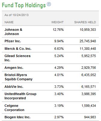 We like what we’re seeing in Big Pharma during the third quarter, especially with respect to pipelines. Still, we think the best way to gain exposure to the healthcare space is via the Healthcare Select SPDR (XLV), which coincidentally has our favorite dividend growth idea in the healthcare space, Johnson & Johnson (JNJ), as its top holding.