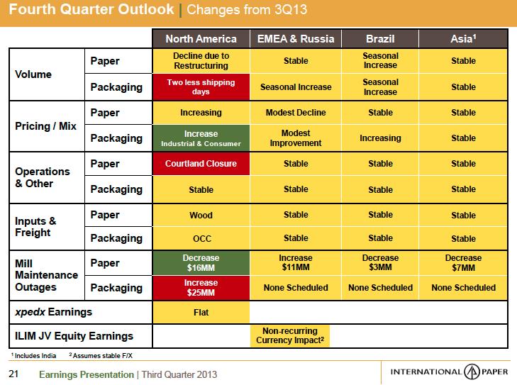 Looking into the fourth quarter, International Paper provided solid guidance, noting that its businesses are fairly stable across all geographies. The company will have some normal fluctuations due to maintenance outages, but these normal occurrences for International Paper will not have an impact on our fair value estimate.