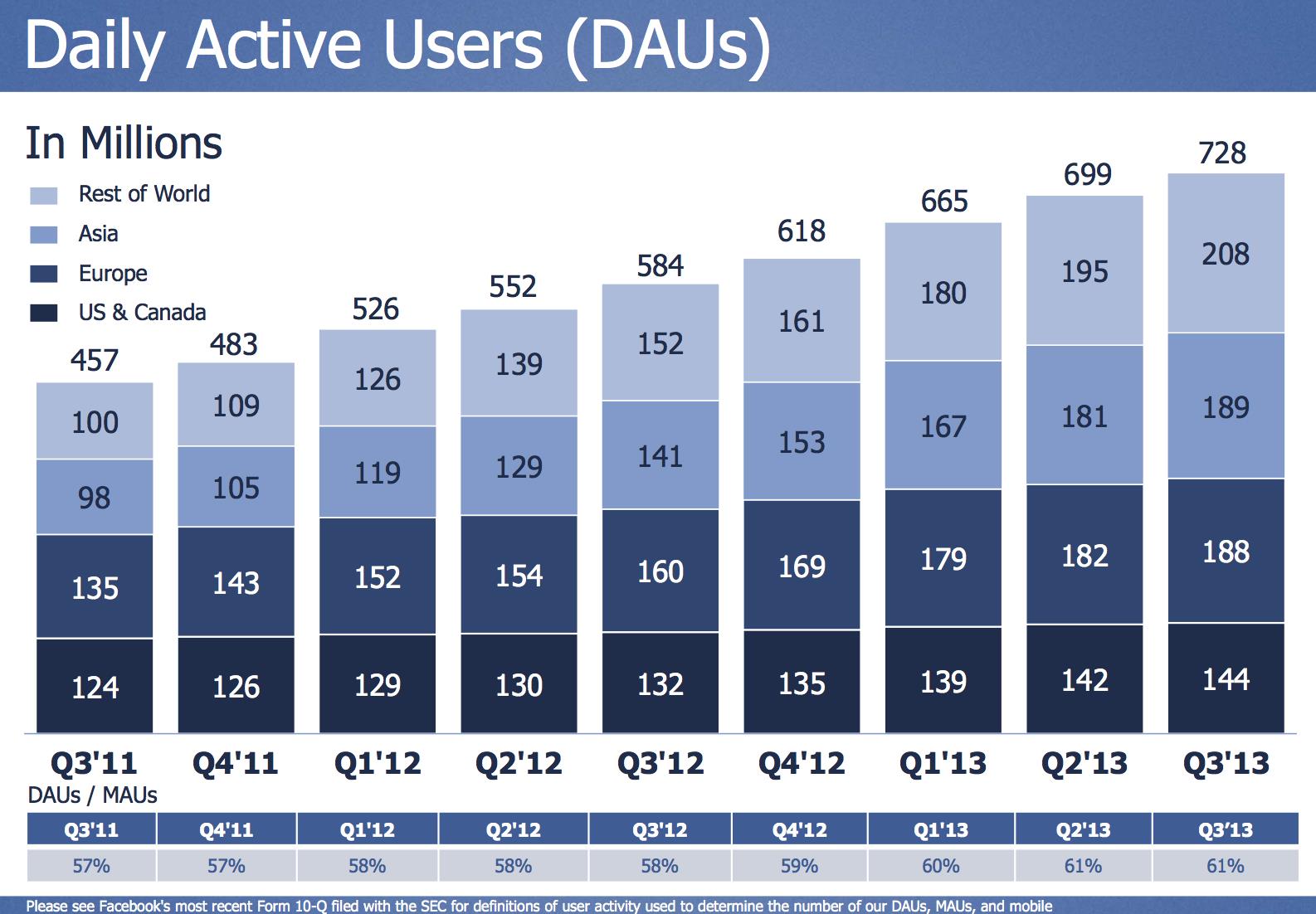 Just when it seemed like Facebook couldn’t get any bigger, the number of Daily Active Users (DAUs) grew 25% year-over-year to 728 million, with most of the growth coming outside the US. With notifications sent directly to smartphones and Facebook’s mobile usage on the rise, we expect this figure to continue to grow going forward. The potent combination of DAUs growth and advertising efficacy should allow the company to command higher premiums for ad space.