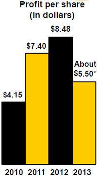 We expect sales and revenues in 2014 to be similar to 2013—about $56 billion in a range of plus or minus 5 percent. To provide a better understanding of our expectations for 2014 profit, we are providing our outlook with and without anticipated restructuring costs. During 2013, we worked on a large number of restructuring activities. Some actions have already occurred, some have been announced and are in process and some are anticipated in our outlook for 2014. In total, we expect the cost of these restructuring actions in 2014 to be about $400 to $500 million and estimate a 2014 after tax impact of about $0.50 to $0.60 per share. With sales and revenues at $56 billion, our profit outlook for 2014 excluding restructuring costs is $5.85 per share, and including restructuring costs of $0.55 per share, our profit outlook for 2014 is $5.30 per share.
