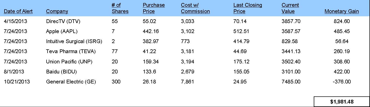 The Results: Members Following the Email Transaction Alerts Have Made About 10 Times Their Subscription Dues in 2013 on Incremental Ideas Alone