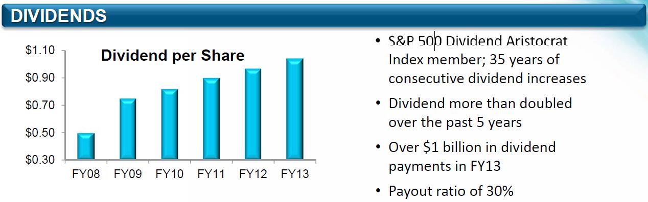 We think Medtronic will be one of the great dividend growth stories of the next few decades. The company is already a Dividend Aristocrat, posting 35 years of consecutive dividend increases. With a payout ratio of 30% and one of the best Valuentum Dividend Cushion scores (given the size of its annual yield: ~2%), the company could double its dividend again and still have excess capacity. Shares are not terribly cheap at this juncture, but we won’t be looking to trim our position in Medtronic in the Dividend Growth portfolio until it registers a 1 or a 2 on the .