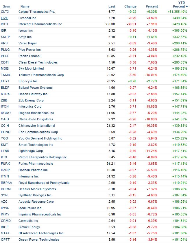 Caveat emptor is prudent counsel for a buyer of small capitalization stocks in this over-heated market. Here is a list of stocks that have more than doubled in less than three months this year. Bubbles almost always end badly.
