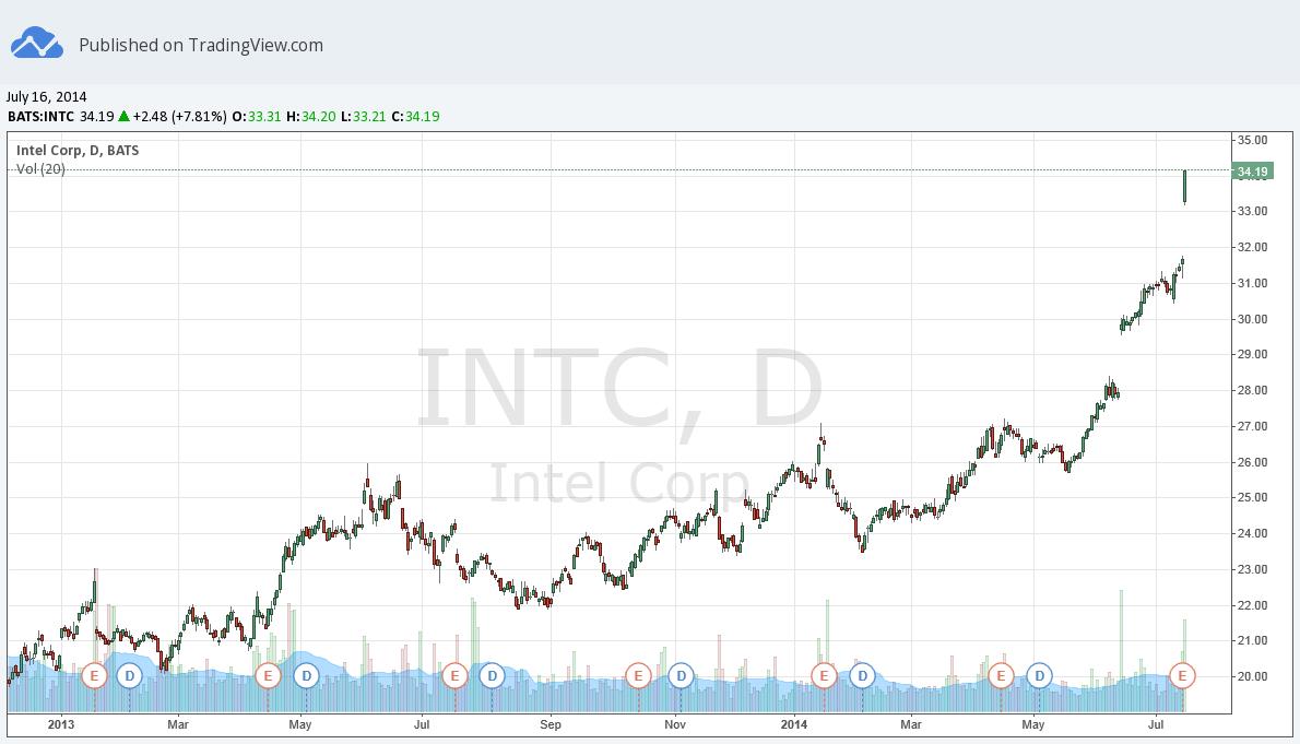 …when was the last time you saw Intel (INTC) up 7% on the trading session?!?! I know I can’t remember, but that’s what happens to Valuentum stocks! Intel’s stock has surged from $24 and change in March to more than $34 per share today on the heels of a strong second-quarter report and outlook (1)…this is a big move for a ~$170 billion market-cap company that pays a nice ~3% dividend yield!