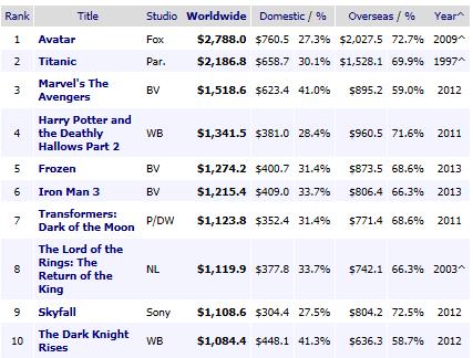 For those that may not be familiar with the movie Frozen, a look at the box office numbers tells the story. Frozen became the highest grossing animated film of all time in March of this year, passing Toy Story 3, which was released in 2010. In May, it made it to number 5 all-time at the global box office with worldwide gross receipts jumping to $1.219 billion at the time. To put this in perspective, the number 4 spot belongs to Harry Potter and the Deathly Hallows, Part 2, which racked up $1.342 billion worldwide. Avatar ($2.788 billion), Titanic ($2.187 billion), and The Avengers ($1.519 billion) round out the top 3, respectively. This is some great company. According to Box Office Mojo, Frozen has reeled in $1.274 billion at the time of this writing.