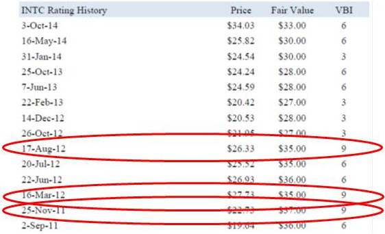 We don’t give individual personal advice, but if you’ve been a member for a while and you don’t own Intel, despite 1) it being a holding in both newsletter portfolios, 2) it registering a 9 on the Valuentum Buying Index on a number of occasions (see below), and 3) its awesome Dividend Cushion score and solid dividend yield…well then…you don’t own Intel. We’re just teasing as we know that a very large number of our members do hold the company, and those that don’t are doing quite well, too. Intel registered one of the highest ratings on the Valuentum Buying Index, a 9, on November 2011 and March and August of 2012.
