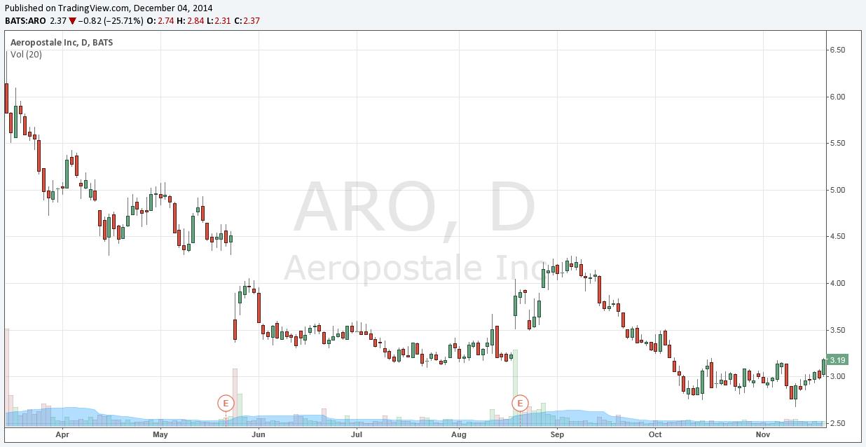 Aeropostale’s third-quarter results left much to be desired. Net sales fell 12%, while comparable sales, including the e-commerce channel, fell 11% compared to last year’s period. Excluding a number of charges in the quarter, Aeropostale posted an adjusted net loss of $35.2 million, or $0.45 per share. We think the firm’s fourth-quarter guidance tells the story well: