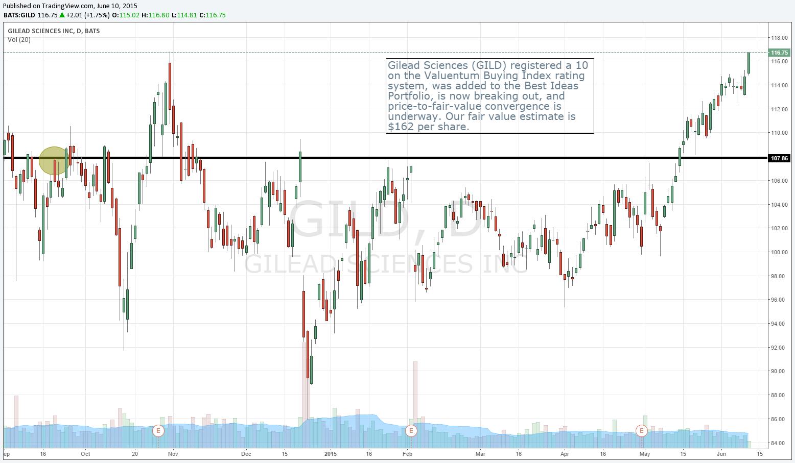 Gilead’s most recent VBI rating of 9, updated today, indicates that we may consider adding more shares to the position in the Best Ideas Newsletter portfolio. We’re monitoring the situation closely.