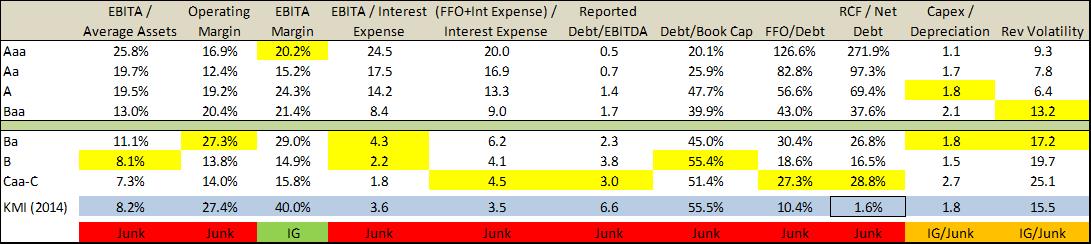 Source: Moody’s Financial Metrics™ Key Ratios by Rating and Industry for Global Non-Financial Corporations, December 2007, Kinder Morgan regulatory filings