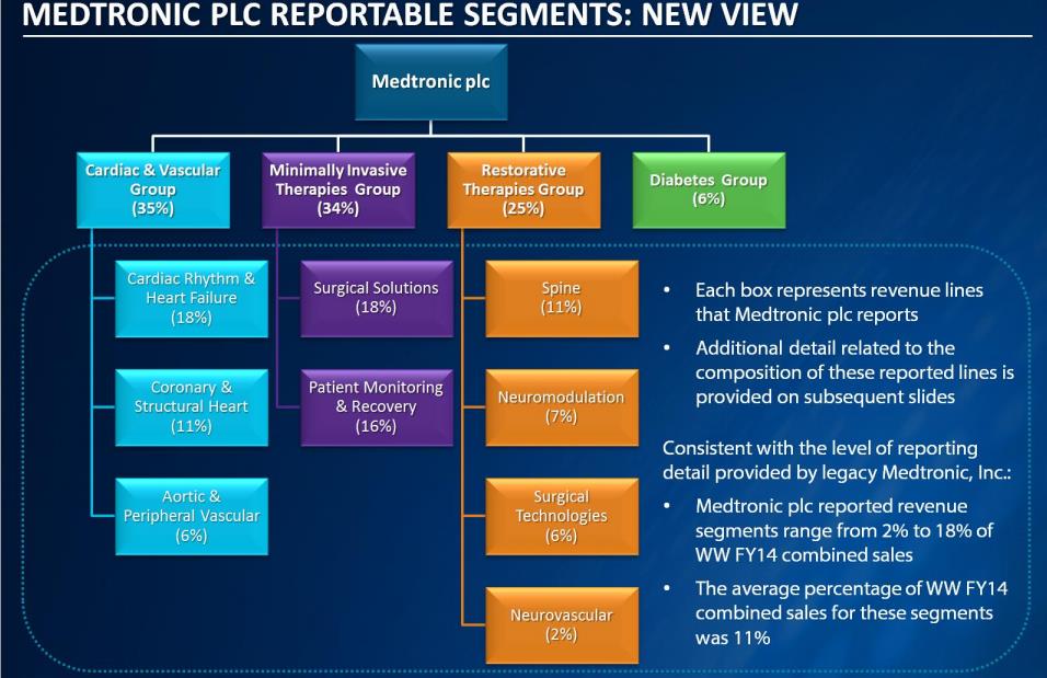 The chart below shows a breakdown of the new Medtronic’s reportable segments.