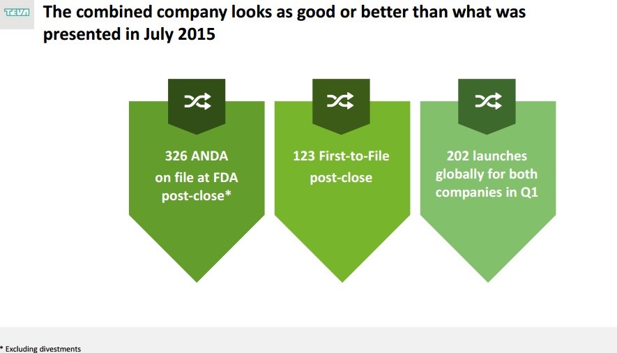 Teva remains confident in its combination with Allergan Generics. Image source: Teva quarterly presentation.