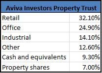 The Aviva Investors Property Trust typically invests up to 90% of total assets into UK commercial property and can invest at most 30% in property related shares. The most recently reported breakdown of sector exposure is on display in the above chart. The fund’s inception took place in 1991.