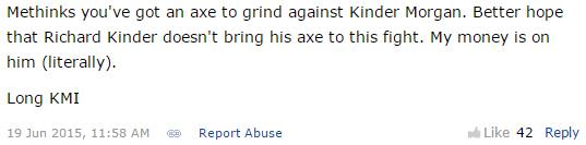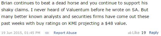 Many are aware of our cutting-edge work on Kinder Morgan (KMI) which not only predicted the collapse in shares from June 2015-January 2016, but also the entity’s dividend cut in December 2015: “Why We’re Dumping Kinder Morgan Right Now (June 2015).” The article link referenced in the previous sentence is the one that we co-syndicated with our partner Seeking Alpha. (We release only about 5%-10% of our work outside our paywall to reach out to new potential clients.) What I’m pointing to in the article referenced is not so much the comments themselves that appear at the bottom, but how many readers actually “liked” such off-base comments (50, 60, 70+). What you are reading below are comments on the June 2015 article(s) before the collapse in Kinder Morgan’s shares and its eventual dividend cut a few months later; again, look at the number of “likes” on these ridiculous comments. Personally, it was a miserable experience for me to see things that others couldn’t. Remember these comments are from June 2015, prior to the collapse and dividend cut.