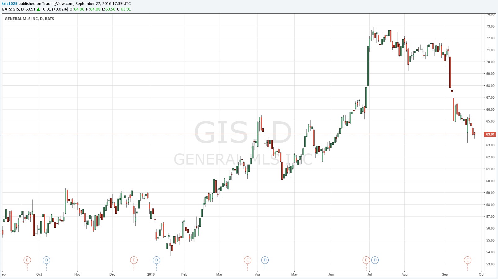 General Mills (GIS) has been a beneficiary of the ongoing dividend growth bubble as its shares are now changing hands at more than 20 times fiscal 2017 earnings per share guidance, even after a material pullback following the release of its fiscal 2017 guidance in early September. Additional pressure has come since the company reported rather pedestrian fiscal first quarter results September 21, as top-line weakness persists in its ‘Foundation’ businesses.