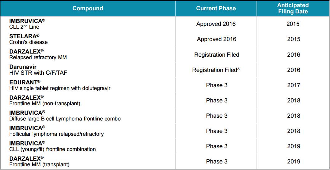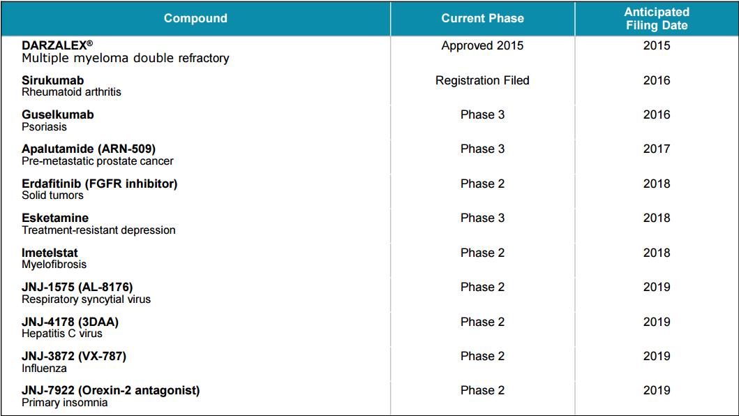 Image above Johnson & Johnson’s planned NME filings, each with $1+ billion sales potential. Source: J&J presentation