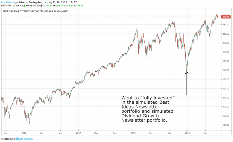 Image: We notified members December 26 that we had moved the Best Ideas Newsletter portfolio and Dividend Growth Newsletter portfolio to a “fully invested” position, from a 30% and 20% cash “weighting” at the high end of the range, respectively.