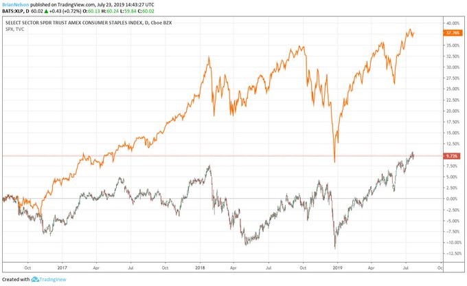 Image: Consumer staples equities come with fantastic business models, but shares of the group are trading at lofty earnings multiples and often come with hefty net debt positions. Consumer staples equities have substantially underperformed the market since early August 2016.
