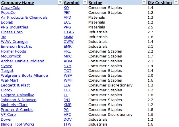 We want to find the stocks that will increase their dividends for 25 years into the future, not use a rear-view mirror to build a portfolio of names that may already be past their prime dividend growth years. The Valuentum Dividend Cushion™ ratio measures just how strong the dividend payment is in the future. It considers the company’s net cash on its balance sheet (cash and cash equivalents less debt) and adds that to its forecasted future free cash flows (cash flow from operations less capital expenditures) and divides that sum by the firm’s future expected cash dividend payments. At its core, the measure tells investors whether the company has enough cash to pay out its dividends in the future, while considering its debt load. If a company has a Valuentum Dividend Cushion™ ratio above 1, it generally can cover its dividend on the basis of our estimates, but if it falls below 1, trouble may be on the horizon.