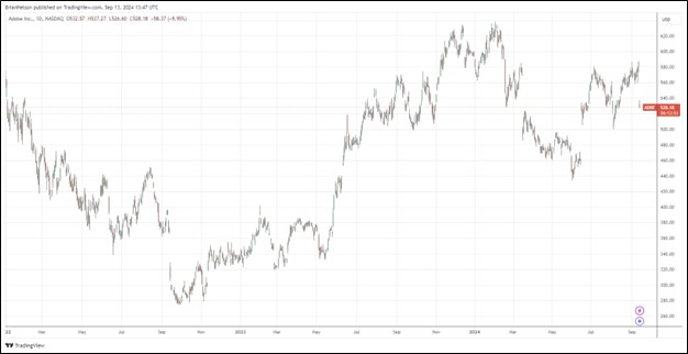 Adobe (ADBE) reported better than expected fiscal third quarter 2024 results on September 12, but the company’s outlook left something to be desired. In the quarter, Adobe grew revenue 11%, while non-GAAP earnings per share came in at $4.65, both above the consensus forecast.