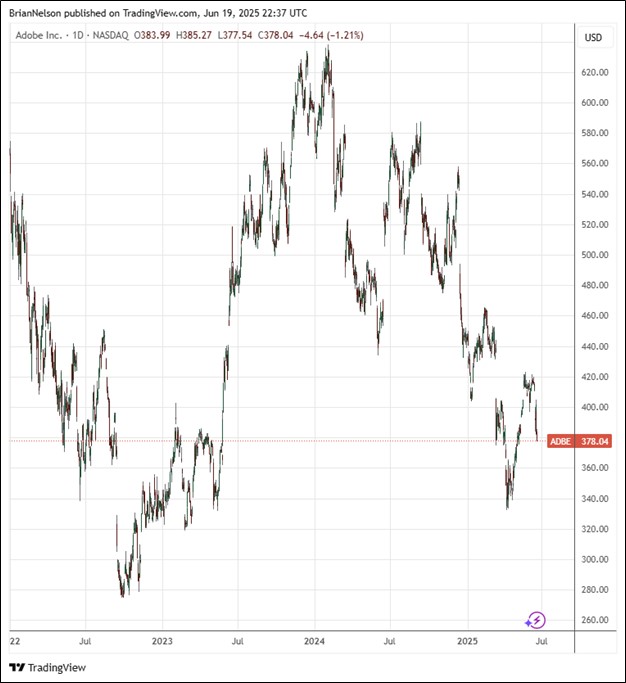 Adobe’s cash flow from operations was $2.19 billion in the fiscal second quarter, and the firm exited the period with $19.69 billion Remaining Performance Obligations (RPO), with current accounting for 67% of them. During the quarter, Adobe repurchased approximately 8.6 million shares. Looking to all of fiscal year 2025, total revenue is targeted in the range of $23.5-$23.6 billion, better than the consensus estimate of $23.45 billion, while non-GAAP earnings per share is expected in the range of $20.50-$20.70 versus consensus of $20.36. We like Adobe’s fundamentals, but don’t include shares in any newsletter portfolio.