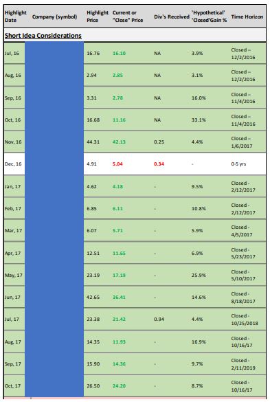 We hope you enjoy this publication greatly. Did you know: Out of the first 16 short-idea considerations that were highlighted in the publication, 15 of them have “worked out.” We think the publication is invaluable for investors seeking a diverse collection of ideas as well as funds that are looking for both long and short considerations.