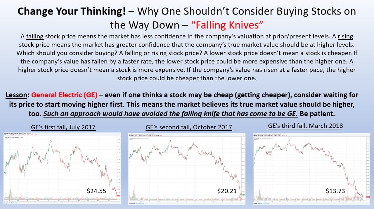 If you may have thought General Electric was undervalued during its fall these past many months, use it as a learning lesson to wait for a company’s share price to start moving higher before considering it (this is why we spend so much time on the Valuentum Buying Index). Being patient for the stock price to turn higher (momentum) could save you from a lot of pain, as in doing so, you might just avoid catching a “falling knife” like GE has been. Don’t ever forget either that it takes a stock price to double for that position to get back to even, after a 50% loss. In this light, the decisions to remove GE and Teva Pharma from the simulated newsletter portfolios at the time we did were as good as adding Boeing or Dollar General (DG), for example.