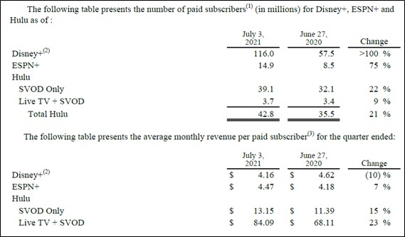 “On the direct-to-consumer side, we are extremely pleased with the continuing success of our portfolio of streaming services. Disney+, ESPN+ and Hulu have performed incredibly well with 116 million 14.9 million and 42.8 million subscribers, respectively, for a total of nearly 174 million subscriptions.
